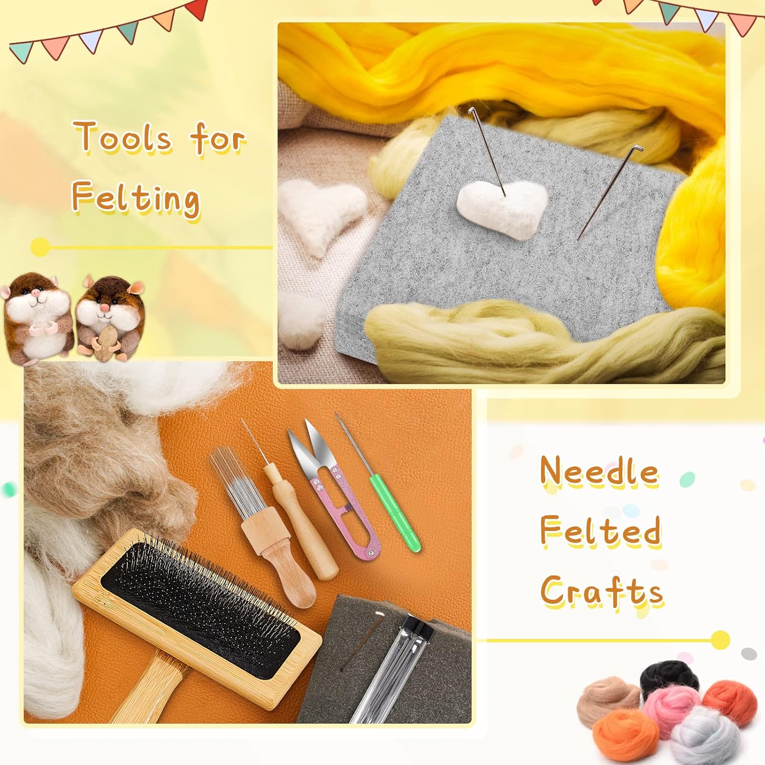 | Included Components | 2 x Wool carders, 1 x Needle felting pad, 38 x Needle felting tools, 2 pieces of carding brushes |