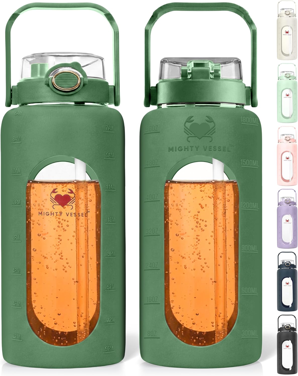 | Included Components | 64 oz Glass Water Bottle, Flip Straw Lid, Silicone Sleeve, Straw Cleaning Brush, Two Reusable Straws |