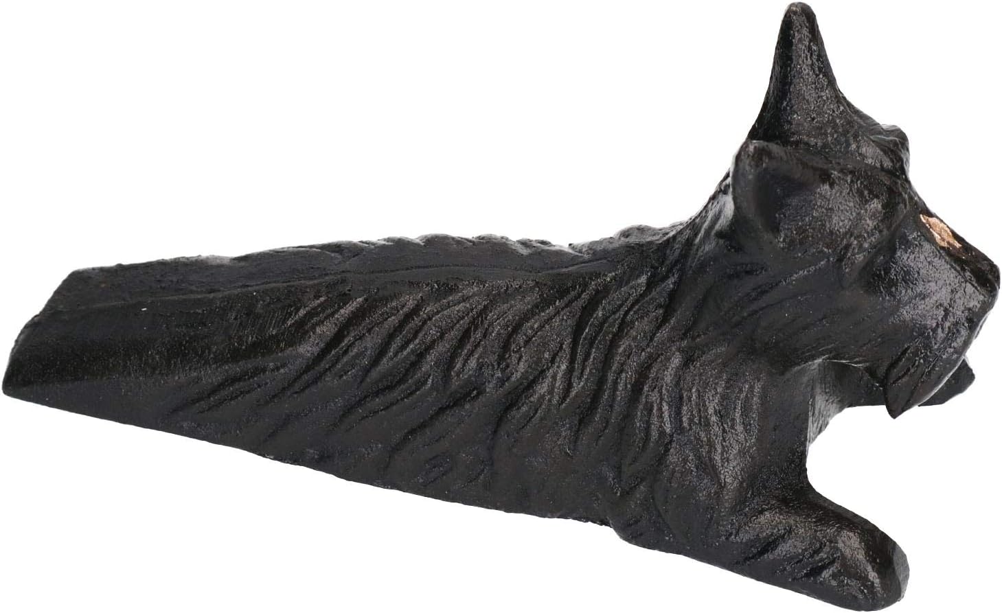 This adorable scotty dog door wedge is a charming way to hold open any door. Cast iron. Perfect for any door. Colour: Black. H: 8 cm W: 6 cm D: 15 cmThis item is NEW, but comes in "Rustic" condition and is being sold as pictured.