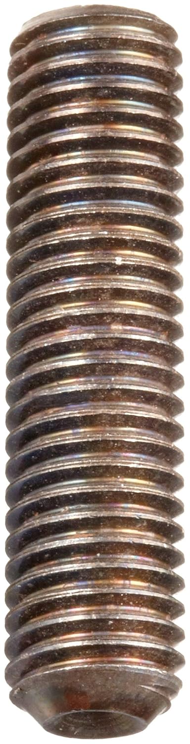 Set Screws are often used for holding a pulley, gear, or other parts from turning relative to a shaft. Alloy Steel is steel that has been alloyed with other materials to improve overall physical properties. Steels are designated by a 4 number SAE Steel grade. The first two digits indicate the primary materials used to form the steel. The last 2 digits identify the percentage of carbon for the alloy (in hundredths). Tensile strength ranges for the alloys typically used in these fasteners range from 170,000 to 180,000 psi (pounds per square inch), making these amongst the strongest of materials. Hex socket drive systems are driven by hex wrenches or power tools with hexagonal bits. Cup Point is the most common point type, with good holding capability. A threaded fastener's size name includes information about the major external diameter, followed by the threads per inch, which indicates if it is coarse or fine. Coarse threads are better when working with brittle materials; they are sturdier and are easier to thread and unthread compared to fine. Coarse threading also allows for thicker coatings and platings.
