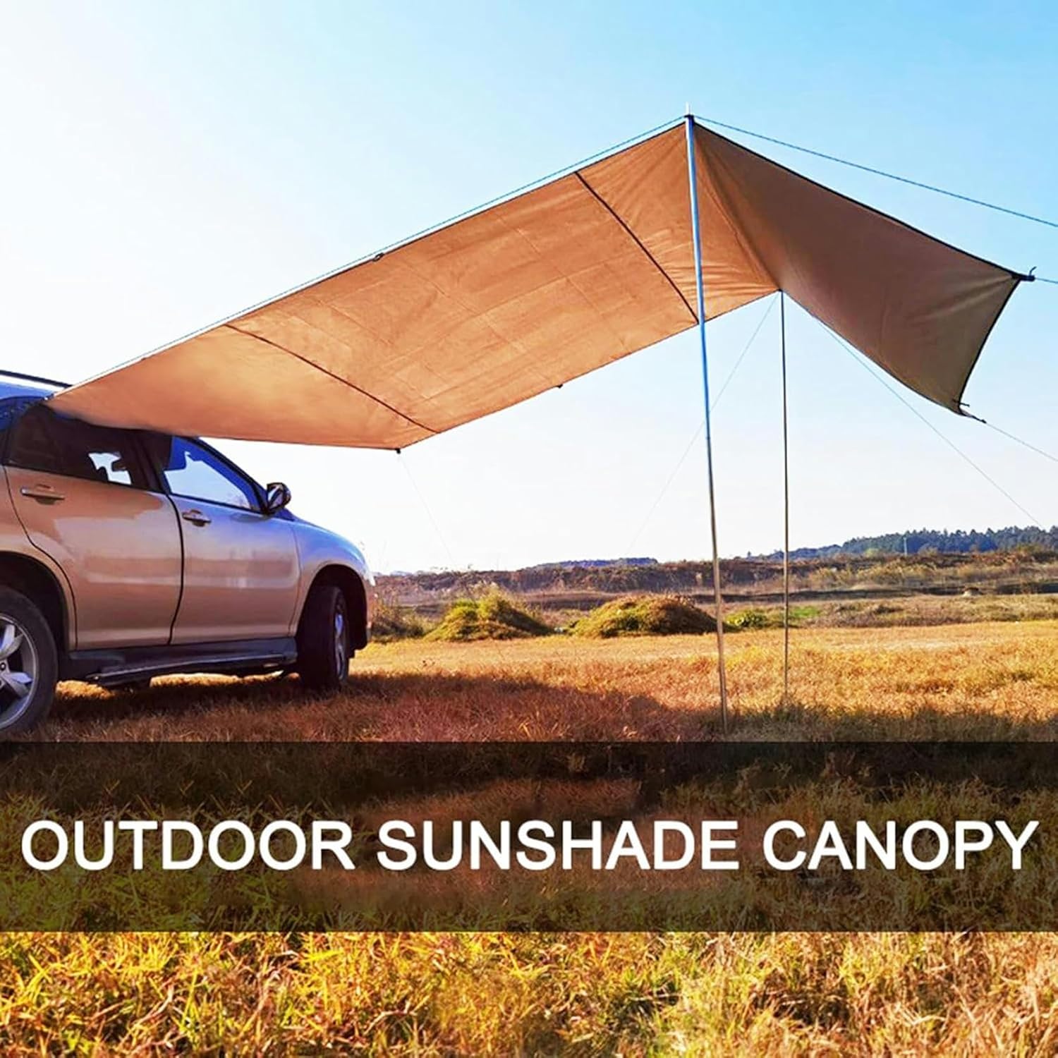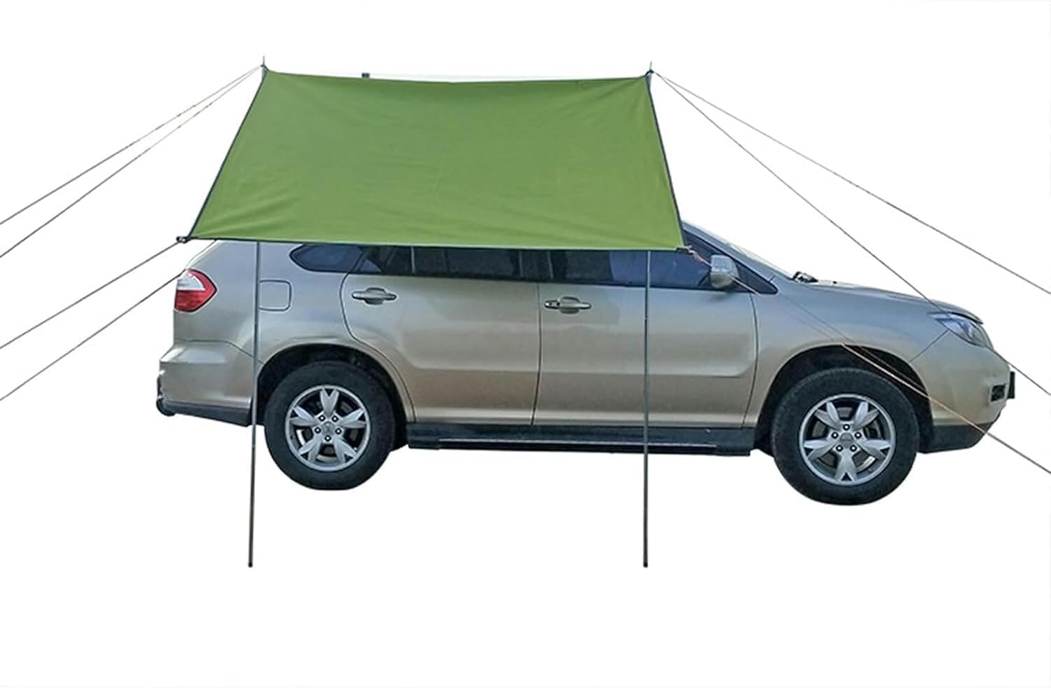 Our tent hammock tarps are made with super tear-resistant material for any adventure. Provides you with reliable shelter in an instant. There are many different uses for this car awning, such as tent tarpaulin, hammock canopy, kitchen cover, improvised tent, tent footprint, groundsheet, instant shade and protection from sudden rain. All hardware installs in minutes - Suction cups easily attach to most windows and frames - Works with SUVs, sedans, trucks or just about any other vehicle. Product parameters:- Name: Car Awning/Car Tent Camping/Car Tent Campervan Awning- Material: 210D silver coated Oxford cloth- Support rod: Aluminum alloy pole- Colour: Green , Khaki- Size: 300*150cm/9.8*4.9ft , 300*200cm/9.8*6.56ft , 440*200cm/14.4*6.56ft- Applicable seasons: spring/summer/autumn/winter- Features of the canopy: large space, rainproof and sunproof- Capacity: 3-6people Package Includes:Car Side Awning x1 Complete set of accessories:Two iron rods8 ground nails8 meters of wind rope 2 pieces3 meters 4 rootsAccessories bag Note:1. We are manually measuring, there may be an error of 1-3cm, please prevail in kind.2. If you have any questions, you can contact us by email, we will reply you within 12 hours.
