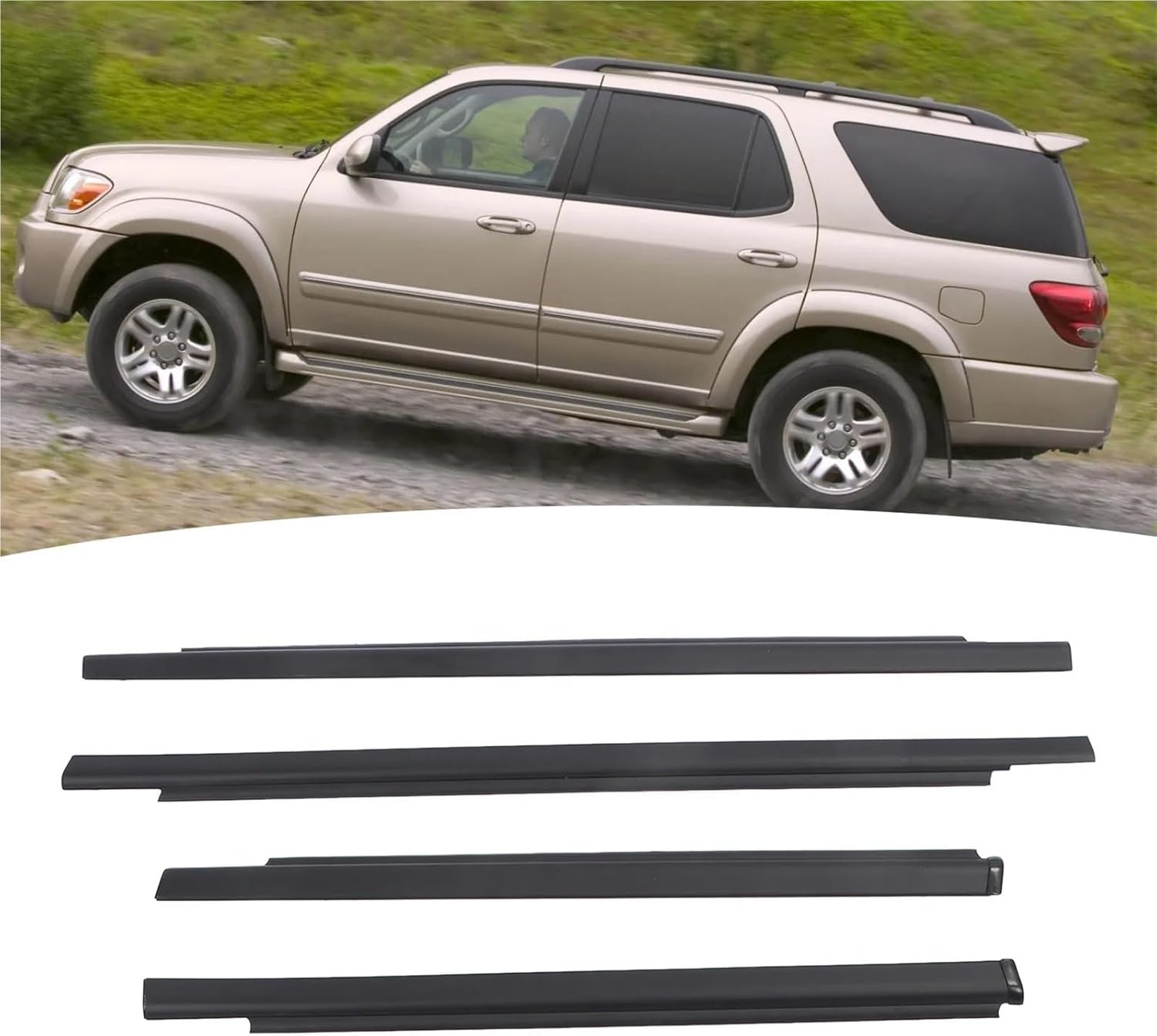 Tailgate Seals4PCS Car Door Window Weatherstrip Noise Reduction Waterproof Dustproof I4 xDoorWindowMouldingTrimsItem Weight : 1465gMaterial : ABS + rubberOEM NO. : 75710 0C010, 757100C010, 75720 0C010, 757200C010