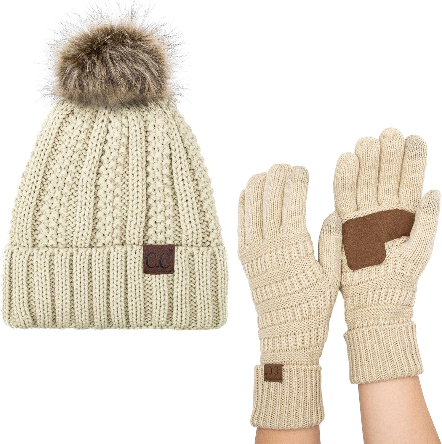 A true classic. Stay warm in style in the C.C Pom Cable Knit Beanie and Glove Set. Quality knit, better than the competition, our C.C brand comes in various solid and mix colors to match your cold-weather outfit.
