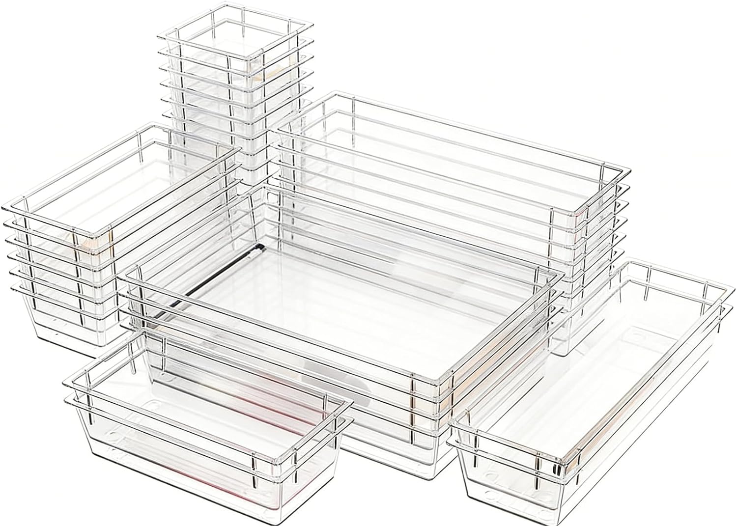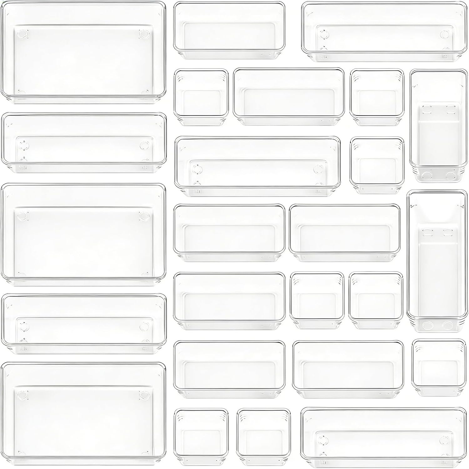 Clear Acrylic Drawer Organizer Trays, 5 Size Junk Box Organization Small Storage Container Bin for Desk Makeup Bathroom Vanity Kitchen Tool Make Up Workspace Home Dorm Apartment Office Room Nightstand