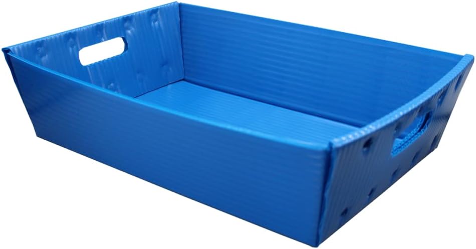 Flipside Products 18" x 12" x 4.5" Blue Plastic Welded Trays are durable and versatile storage solutions, perfect for handling supplies, materials, and paper. Made from corrugated plastic, these trays are lightweight yet sturdy, with sonic welding for enhanced strength. They are stackable and nestable for easy storage, feature cut-out carrying handles, and are 100% recyclable, making them both practical and eco-friendly. Available in a convenient 2-pack.
