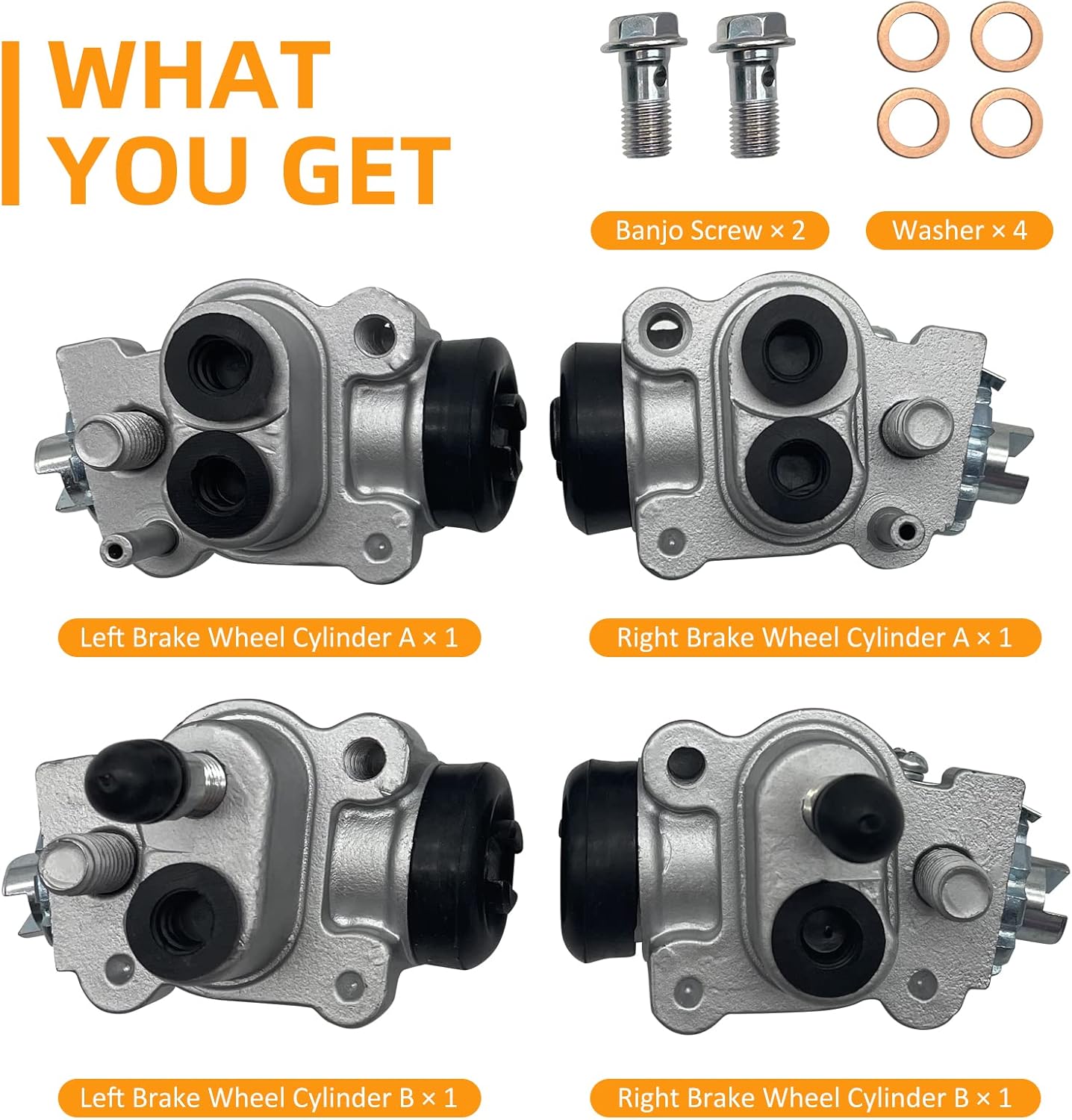 OEM#45330-HN0-A0145370-HN0-A0145310-HN0-A01Repalcement OEM#45350-HN0-A0145370-HN5-N0145350-HN5-N01Package:Left Brake Wheel Cylinder A × 1Left Brake Wheel Cylinder B × 1Right Brake Wheel Cylinder A × 1Right Brake Wheel Cylinder B × 1Banjo Screw × 2Washer × 4Fit for Honda ATV▶ TRX400FW Foreman 400 1999-2003 (Except TRX400EX edition)1999 TRX400FW Foreman 4x42000 TRX400FW Foreman 4x42001 TRX400FW Foreman 4x42002 TRX400FW Foreman 4x42003 TRX400FW Foreman 4x4