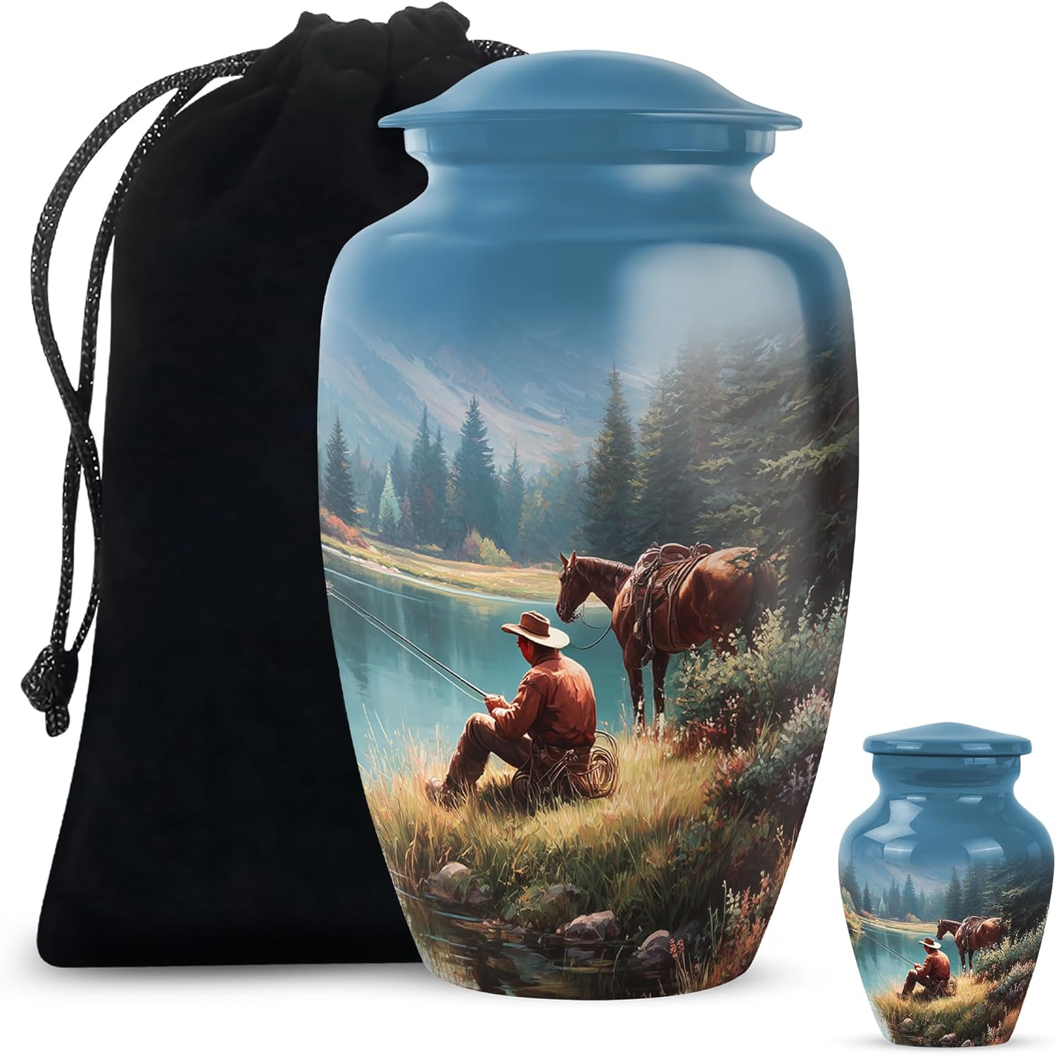 The YATHABHISA Cowboys Urn is a graceful and meaningful way to honor the memory of a loved one. Adorned with a beautifully detailed Cowboys, this urn symbolizes peace, lightness, and spiritual connection, offering comfort to those grieving. Designed to hold the full ashes of an adult, it is crafted from durable materials with a secure, threaded lid to ensure long-term protection. The elegant shape and handcrafted finish make it suitable for display during funeral services, burials, or as a lasting home memorial. Whether honoring a parent, partner, or dear friend, this urn brings both emotional warmth and artistic elegance. It also serves as a thoughtful memorial gift for men and women, offering a way to preserve cherished memories with love and dignity. Blending symbolism, quality, and beauty, this urn is a heartfelt tribute to a life that will always be remembered.