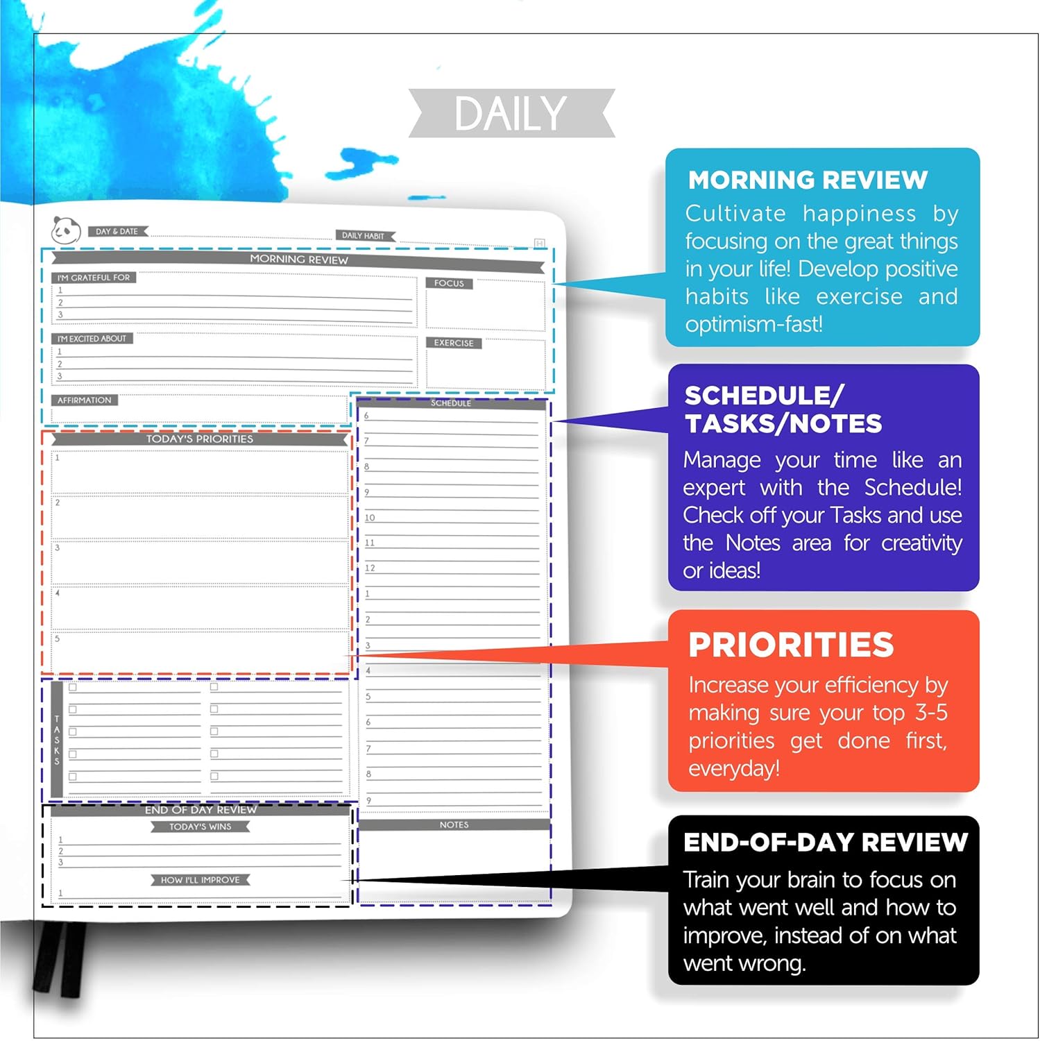Orange Undated 6 Month Day Planner - Daily Planner with Classic Sticky Notes by Panda Planner - Organizer Planner and Sticky Notes for Productivity