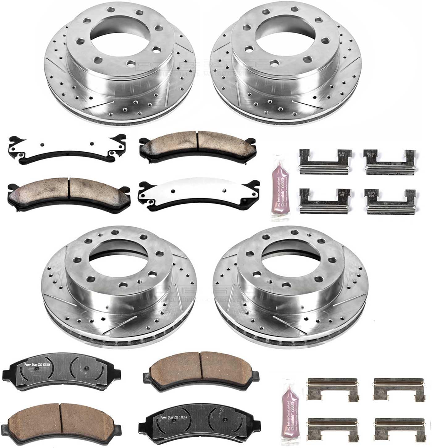 Product: PowerStop Z36 Extreme Truck & Tow Brake Pads and Rotor KitThe PowerStop Z36 Truck & Tow Brake Kit is engineered for drivers who demand more from their brakes. Whether you’re towing a trailer, hauling heavy loads, driving through mountainous terrain, running oversized wheels and tires, or driving around town, this complete brake upgrade delivers the stopping power and durability your truck or SUV needsWhat’s in the Box: This premium Z36 brake kit upgrade includes Z36 Carbon-Fiber Ceramic Brake Pads, Drilled & Slotted Performance Brake Rotors, and Premium Stainless-Steel Installation Hardware.Engineered For:Heavy Towing & Hauling – Ideal for campers, work trailers, boats, and medium duty fleetMountain & Severe-Duty Driving – Designed to resist brake fade on long descentsModified Trucks & SUVs – Perfect for lifted suspsension vehicles or larger wheel/tire setupsAll Trucks & SUVs – Ideal for all trucks & SUV's looking for performance brakingComponent Breakdown:Z36 Carbon-Fiber Ceramic Brake Pads - Formulated with a low-dust ceramic compound reinforced with carbon fibers for extreme stopping power. Stainless-steel shims help reduce noise and vibration while maintaining everyday drivability.Drilled & Slotted Performance Rotors - Manufactured from G3000 metallurgy and built to strict OE tolerances. Precision-drilled holes and slots vent heat, remove gas and debris, and maintain consistent braking performance under extreme conditions. Silver Zinc Dichromate plating protects against rust and corrosion.Installation Hardware - High-quality stainless-steel hardware ensure a smooth, hassle-free installation.Easy, Bolt-On Installation: This is a direct-fit replacement designed to install with no modifications required. All necessary hardware is included for a straightforward install using factory mounting locations.This Item Fits:Front and Rear: 2002-04 Chevrolet Avalanche 2500 Models with 2" body lift Front and Rear: 2004 Chevrolet Silverado 2500 HD with 2 Wheel Steering Front and Rear: 2001-10 Chevrolet Silverado 2500 HD Front and Rear: 2007 Chevrolet Silverado 2500 HD Classic Front and Rear: 2006 Chevrolet Silverado 3500 with Single Rear Wheels (SRW) Front and Rear: 2004-05 Chevrolet Silverado 3500 4WD; with Single Rear Wheels (SRW) Front and Rear: 2007 Chevrolet Silverado 3500 Classic with Single Rear Wheels (SRW) Front and Rear: 2007-10 Chevrolet Silverado 3500 HD with Single Rear Wheels (SRW) Front and Rear: 2004 GMC Sierra 2500 HD with 2 Wheel Steering Front and Rear: 2001-10 GMC Sierra 2500 HD Front and Rear: 2007 GMC Sierra 2500 HD Classic Front and Rear: 2006 GMC Sierra 3500 with Single Rear Wheels (SRW) Front and Rear: 2004-05 GMC Sierra 3500 4WD; with Single Rear Wheels (SRW) Front and Rear: 2007 GMC Sierra 3500 Classic with Single Rear Wheels (SRW) Front and Rear: 2007-10 GMC Sierra 3500 HD with Single Rear Wheels (SRW)