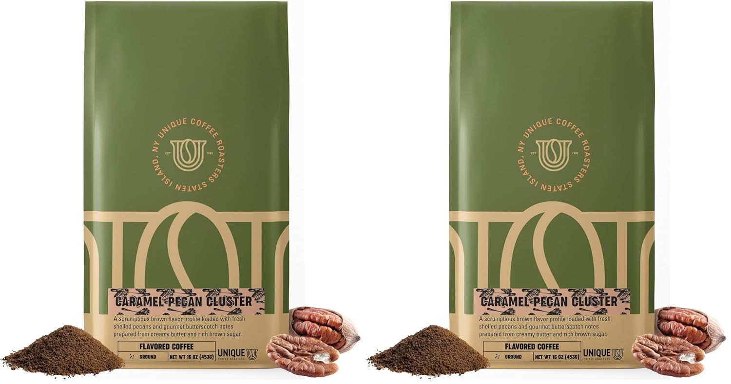 UNIQUE COFFEE ROASTERS 100% ARABICA GROUND COFFEE WITH PREMIUM FLAVORS: We start with using the best Arabica coffee, then we add premium gourmet flavors to create delicious bags of flavored ground coffee. VARIETY OF GOURMET FLAVORS: Enjoy our delicious line of coffee flavors: Caramel Pecan, Cinnamon Hazelnut, French Vanilla, Coconut Kiss, Blueberry Cobbler, Belgian Chocolate, & Holiday varieties (including Peppermint, Pumpkin Spice, Winter Java, Apple Cider Donut, & Gingerbread Cookie! ROAST LEVEL: Medium Roasted for smooth, balanced coffee flavor. BAG SIZE: All flavors available in 1 LB (16 oz) sized bags. UNIQUE COFFEE ROASTERS: Family-owned coffee roaster located in Staten Island, NY. Skilled artisans with over 25 years of roasting experience& coffee expertise