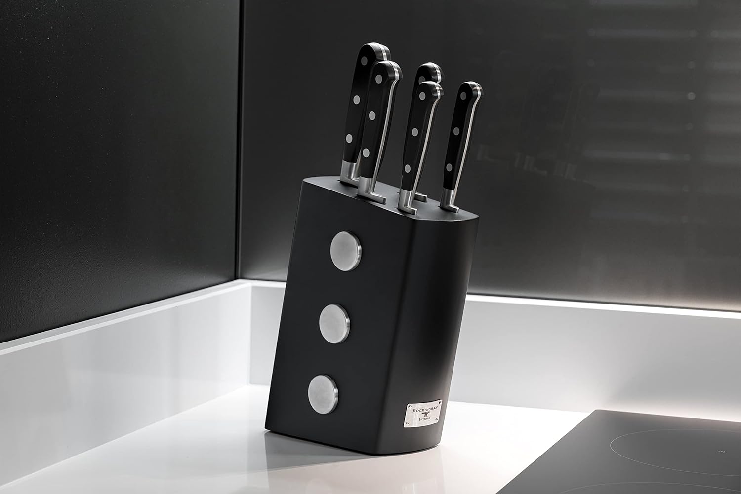 Bring classic knife tradition to the modern kitchen with the Rockingham Forge FRF range! This stylish and all-encompassing range is inspired by the design of the classic French chef’s knife, featuring a riveted handle which is available in a sleek black Pakkawood, or a delightful Rosewood with an eye-catching reddish hue. The 13cm Utility Knife is one of the most used knives in professional kitchens, with a shorter blade than a regular chef’s knife. The knife is well suited for small food types which require more nimble and intricate cutting than larger blades, such as button mushrooms, shallots, herbs and spring onions.