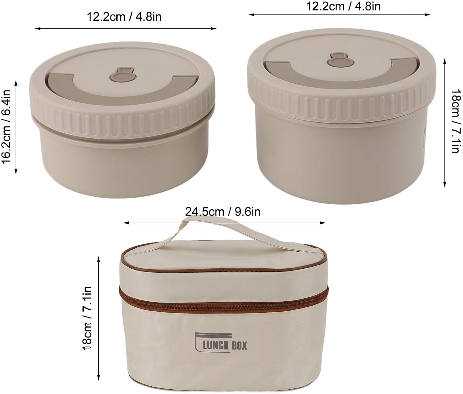 1. GOOD INSULATION: Made of 316 stainless steel material, it has excellent heat preservation performance, which can keep the temperature of food for a long time and keep your meal hot and fresh. 2. STRONG SEALING PERFORMANCE: The box has good sealing performance, which can avoid food leakage and ensure the taste and quality of food. 3. PORTABLE AND LIGHTWEIGHT: With a round design, the lunch box has a small and delicate shape, Good for carrying, easy to carry to the office, school, picnic and other occasion, enjoying food at any time. 4. AND : Made of food grade stainless steel material, it will not produce any chemical to food, guaranteeing your dietary safety. In addition, the stainless steel material is easy to clean and maintain. 5. MULTIFUNCTIONAL USE: In addition to being used as a lunch box, it can also be used as an insulated bottle, ingredient storage box, and many other uses, very practical. Spec: Item Type: Insulated Food Container Material: 316 Stainless Steel, Plastic Color: Beige PackageList: 2 xInsulated Food Container 1 x Insulated Bag or3 x Insulated Food Container 1 x Insulated Bag or4 x Insulated Food Container 1 x Insulated Bag